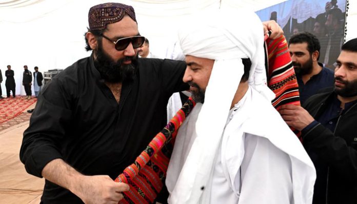 Addressing the gathering, the Balochistan chief minister also urged those who had taken up arms to lay down their weapons and return, stating that the doors of the state are open for them.