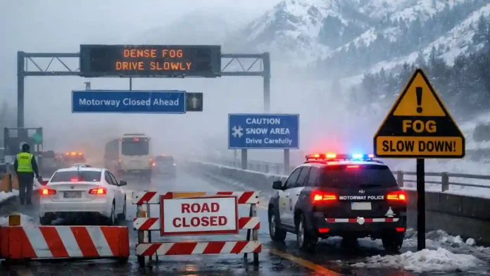 ملک کے مختلف شہروں میں شدید دھند کے باعث حد نگاہ متاثر ہونے پر موٹرویز کو کئی مقامات سے ٹریفک کیلئے بند کر دیا گیا۔موٹروے حکام کے مطابق موٹروے ایم 2 لاہور سے ہرن مینار تک، ایم 3 فیض پور سے جڑانوالہ اور ایم 4 خانیوال سے ملتان تک بند کر دی گئی جبکہ سیالکوٹ موٹروے ایم 11 پر بھی گاڑیوں کا داخلہ ممنوع قرار دیا گیا ہے۔قومی شاہراہوں پر لاہور، مانگا منڈی، پھول نگر اور پتوکی میں شدید دھند کے باعث ٹریفک کی روانی میں مشکلات کا سامنا ہے، ترجمان موٹروے پولیس نے ڈرائیورز کو فوگ لائٹس استعمال کرنے کی ہدایت کی ہے